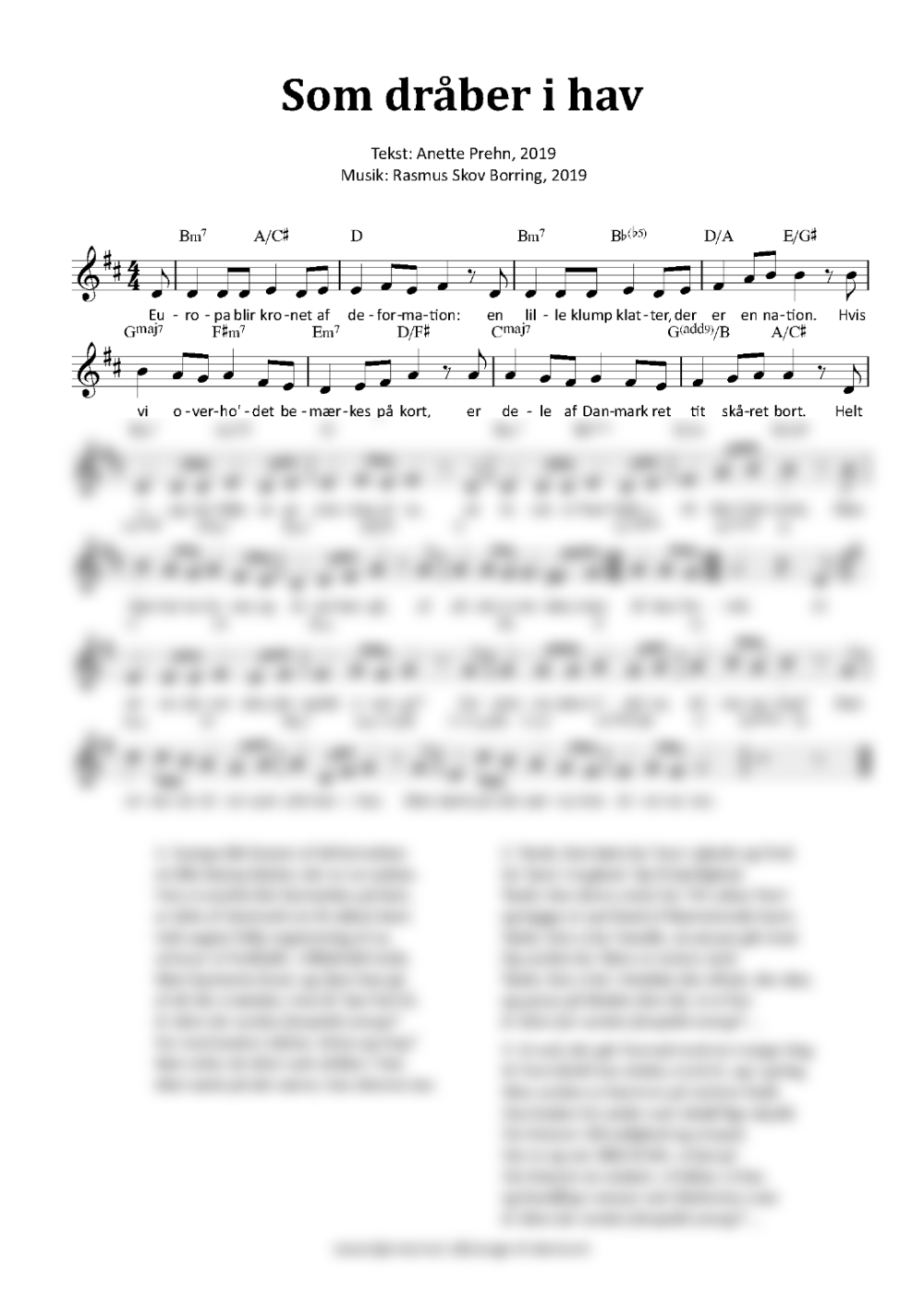 “Som dråber i hav” er skrevet af Anette Prehn med musik af Rasmus Skov Borring.